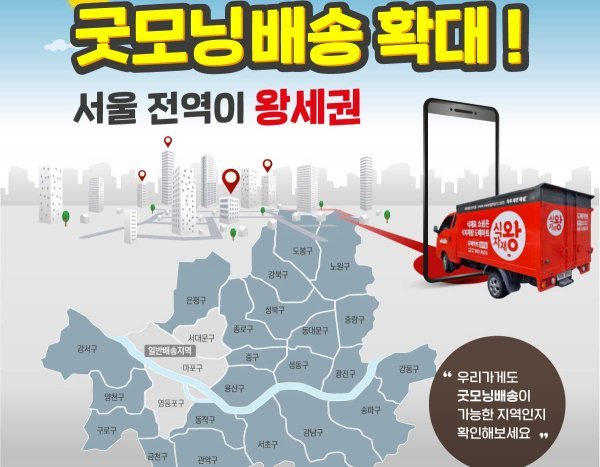 먼저 식자재왕 도매마트는 종로구, 용산구, 동대문구, 강서구 등 서울 17개 지역에 굿모닝배송을 도입하며 배송 지역을 확대한다. 굿모닝배송은 식자재왕 온라인몰을 통해 자영업자를 대상으로 운영하고 있는 아침배송 서비스다. 이번 배송지 확대에 맞춰 오후 10시 이전에 주문하면 다음날 오전 2~9시에 식자재를 배송 받을 수 있다. 식자재왕 온라인몰은 주문 시 직영 식자재마트인 식자재왕 도매마트에서 직접 배송하는 시스템이다. 굿모닝배송의 확대 도입에 따라 서울 전역의 자영업자가 식자재를 배송 받을 수 있게 됐다.