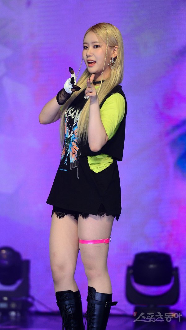 라필루스(Lapillus) 베시가 22일 서울 광진구 건국대학교 새천년관에서 진행된 첫 번째 미니 앨범 ‘걸스 라운드 파트1(GIRL’s ROUND Part.1)‘ 발매 쇼케이스에서 포토타임을 갖고 있다.
