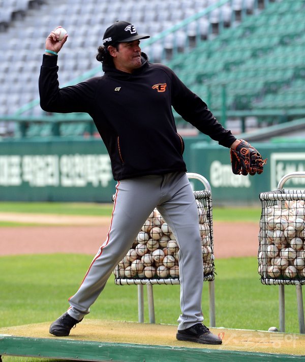 22일 인천 SSG 랜더스필드에서 ‘2022 신한은행 SOL KBO리그’ SSG 랜더스와 한화 이글스의 경기가 열린다. 한화 수베로 감독이 배팅볼을 던지고 있다.