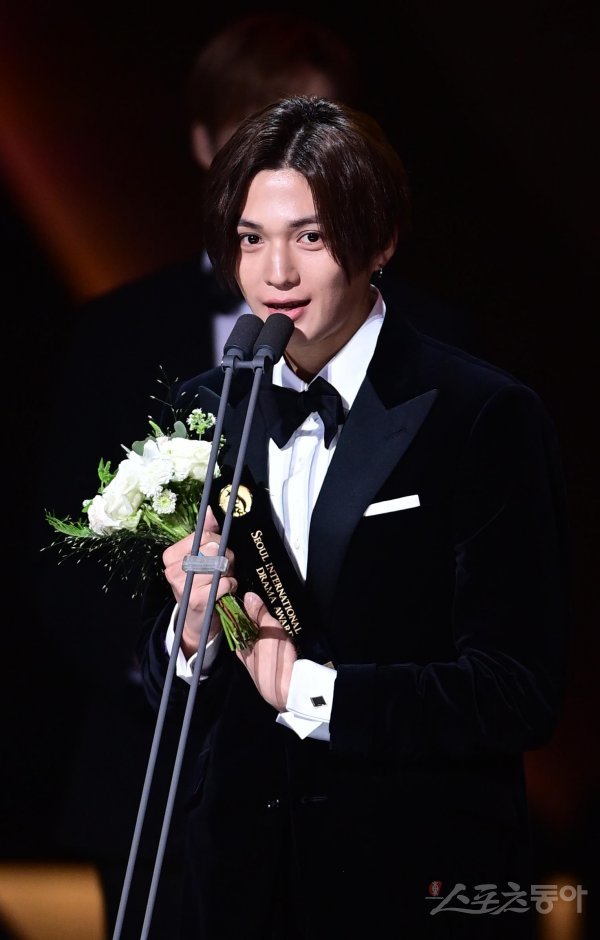 일본 배우 야기 유세이가 22일 서울 영등포구 여의도동 KBS홀에서 열린 ‘서울드라마어워즈 2022’에서 국제초청부문 아시아스타상을 수상해 소감을 말하고 있다.