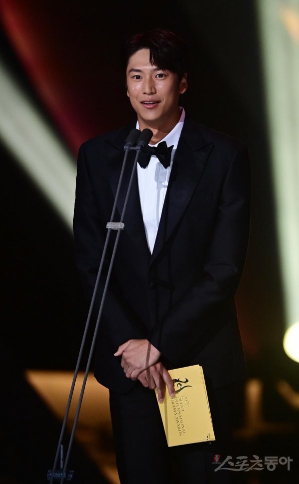 배우 나인우가 22일 서울 영등포구 여의도동 KBS홀에서 열린 ‘서울드라마어워즈 2022’에서 시상에 앞서 인사하고 있다.