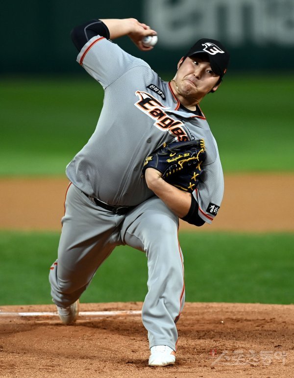 22일 인천 SSG 랜더스필드에서 ‘2022 신한은행 SOL KBO리그’ SSG 랜더스와 한화 이글스의 경기가 열렸다. 한화 선발투수 김민우가 힘차게 볼을 던지고 있다.