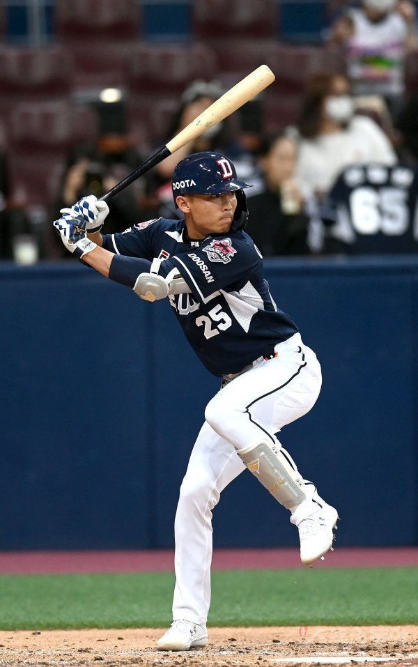 22일 서울 고척스카이돔에서 ‘2022 신한은행 MY CAR KBO리그’ 두산 베어스와 키움 히어로즈 경기가 열렸다. 3회초 두산 이유찬이 타격을 하고 있다.