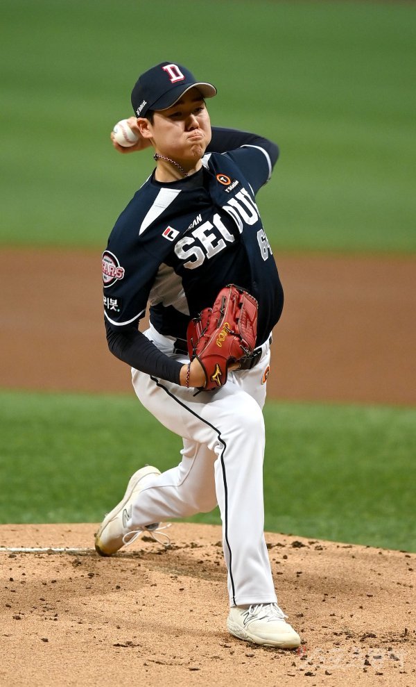 22일 서울 고척스카이돔에서 ‘2022 신한은행 MY CAR KBO리그’ 두산 베어스와 키움 히어로즈 경기가 열렸다. 선발 투수로 등판한 두산 최승용이 역투하고 있다.