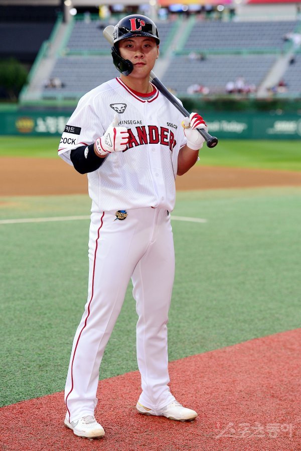 22일 인천 SSG 랜더스필드에서 ‘2022 신한은행 SOL KBO리그’ SSG 랜더스와 한화 이글스의 경기가 열린다. 상무에서 제대한 SSG 최준우가 카메라를 향해 포즈를 취하고 있다. 인천 | 김민성 기자 marineboy@donga.com