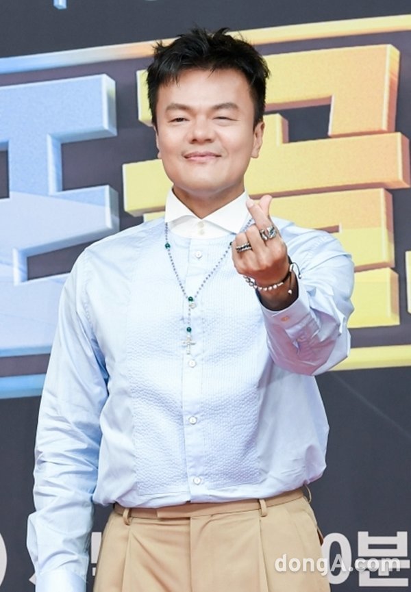 23일 오후 진행된 SBS 새 예능 ‘싱포골드’ 제작발표회에서 박진영이 포즈를 취하고 있다.