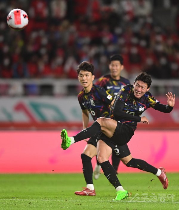 23일 경기도 고양종합운동장에서 열린 ‘하나은행 초청 축구국가대표팀 친선경기’ 한국과 코스타리카의 경기에서 한국 황의조가 슈팅을 하고 있다.