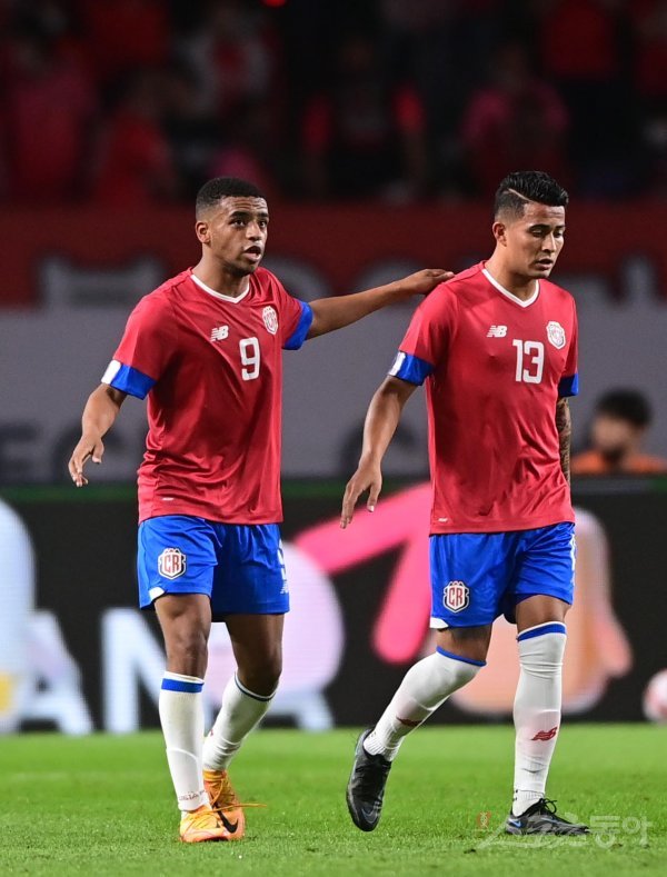 23일 경기도 고양종합운동장에서 열린 ‘하나은행 초청 축구국가대표팀 친선경기’ 한국과 코스타리카의 경기에서 코스타리카 베넷이 동점골을 성공시킨 후 동료와 기쁨을 나누고 있다.