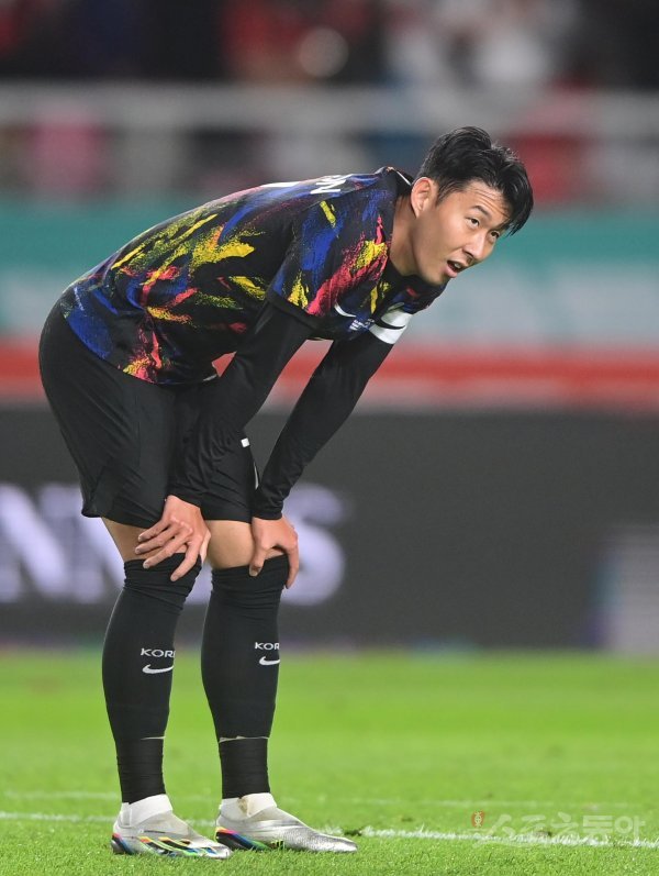 23일 경기도 고양종합운동장에서 열린 ‘하나은행 초청 축구국가대표팀 친선경기’ 한국과 코스타리카의 경기에서 한국 손흥민이 날아간 골 찬스에 아쉬워하고 있다.