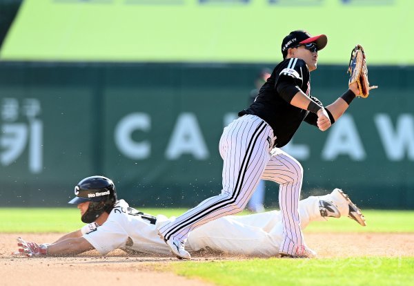 25일 인천 SSG 랜더스필드에서 ‘2022 신한은행 SOL KBO리그’ SSG 랜더스와 LG 트윈스의 경기가 열렸다. 7회말 2사 1루에서 SSG 김성현이 2루 도루를 성공시키고 있다.