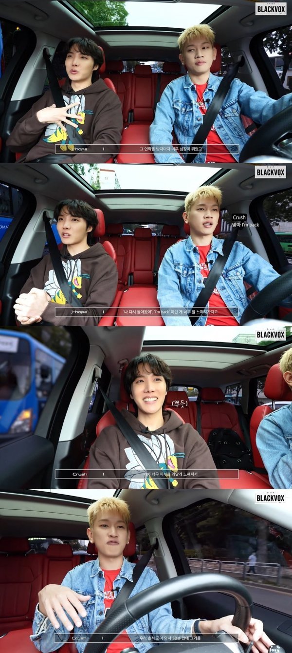 크러쉬는 공식 유튜브 채널을 통해 신개념 드라이브 토크쇼 \'BLACKVOX\' 1화를 공개했다. 첫 번째 게스트는 방탄소년단 제이홉이었다.