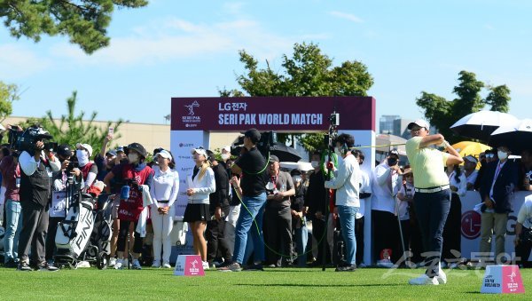 26일 인천 베어즈베스트 청라CC에서 열린 ‘LG전자 박세리 월드매치’ 10번 홀에서 청야니가 티샷을 하고 있다.