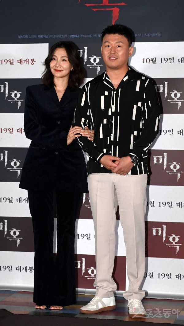 26일 서울 강남구 메가박스 코엑스점에서 열린 영화 ‘미혹’ 시사회에서 배우 박효주, 김민재가 포토타임을 갖고 있다.