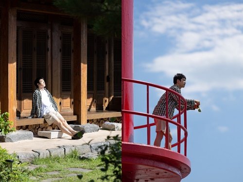또 다른 사진에선 강렬한 무대 조명 대신 따뜻한 햇살이 내리쬐는 한옥 대청에 기대어 앉아 눈을 감고 가을 내음을 한껏 느끼기도. 빨간 등대에 올라선 그가 청명한 하늘, 내려다보이는 풍경에 감탄하며 여유를 즐기는 모습은 날씨 좋은 요즈음 훌쩍 여행을 떠나고픈 시청자들의 마음을 자극한다.
