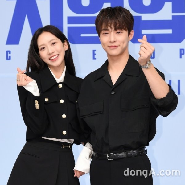 27일 오후 진행된 SBS 새 월화드라마 ‘치얼업’ 제작발표회에서 배우 한지현과 배인혁이 포즈를 취하고 있다.