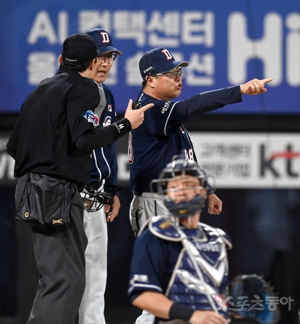 27일 수원KT위즈파크에서 ‘2022 신한은행 MY CAR KBO리그’ 두산 베어스와 KT 위즈 경기가 열렸다. 두산 김태형 감독이 선수를 교체하고 있다.