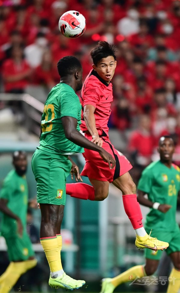 27일 서울월드컵경기장에서 열린 ‘하나은행 초청 축구국가대표팀 친선경기’ 한국과 카메룬의 경기에서 정우영이 카메룬 수비를 뚫고 드리블 돌파하고 있다.