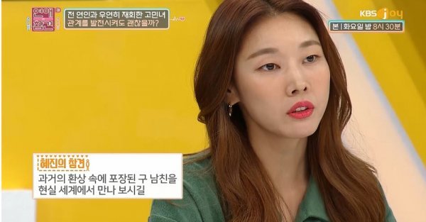 27일 방송된 KBS Joy \'연애의 참견 시즌3\'에서는 전 남자친구를 7년 만에 재회한 30세 고민녀 사연이 소개됐다.
