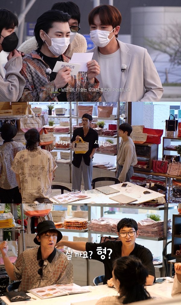 식사를 마친 멤버들은 판매 중인 가방을 보며 김상균에게 ‘형’이라고 부르며 기념품 구입을 제안했다. 이에 김상균은 “뭔가 말리는 느낌이다”며 당황했지만 각자 선택한 가방을 구입하며 쇼핑을 훈훈하게 마무리했다.