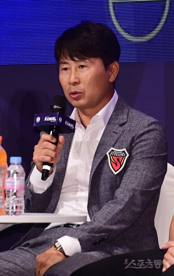 28일 서울 마포구 상암동 누리꿈스퀘어에서 열린 ‘K리그 파이널라운드 미디어데이’에서 포항 김기동 감독이 취재진의 질문에 답하고 있다.