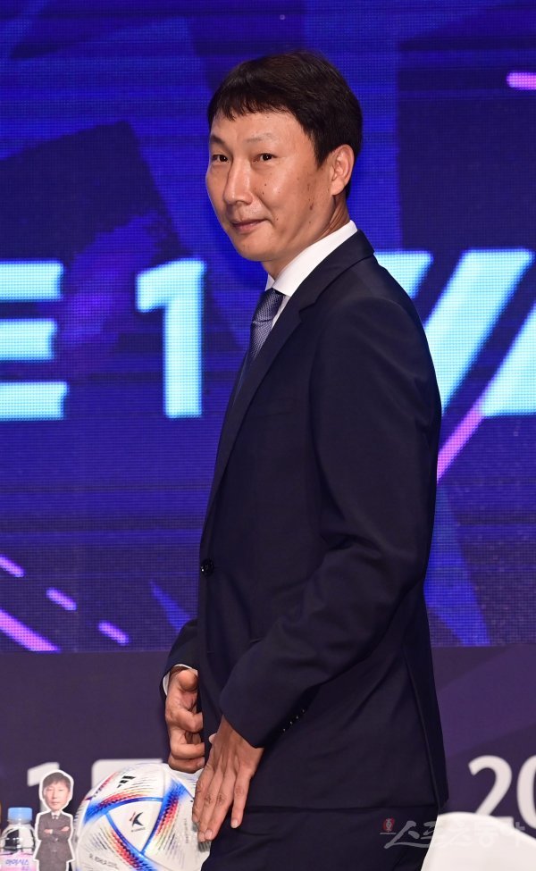 28일 서울 마포구 상암동 누리꿈스퀘어에서 열린 ‘K리그 파이널라운드 미디어데이’에서 전북 김상식 감독이 무대에 오르고 있다.