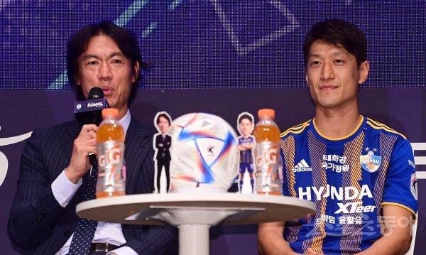 28일 서울 마포구 상암동 누리꿈스퀘어에서 열린 ‘K리그 파이널라운드 미디어데이’에서 울산 홍명보 감독이 취재진의 질문에 답하고 있다.