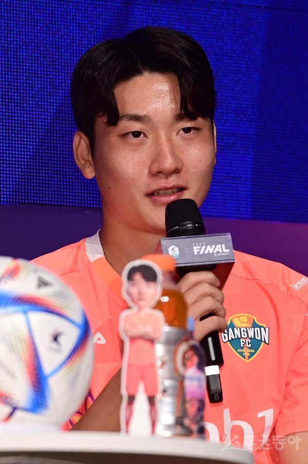 28일 서울 마포구 상암동 누리꿈스퀘어에서 열린 ‘K리그 파이널라운드 미디어데이’에서 강원FC 김동현이 인사말을 하고 있다.