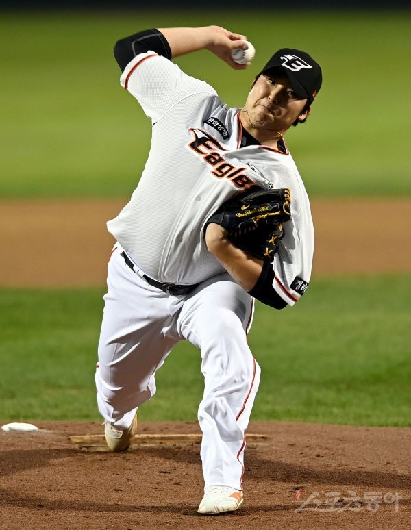 28일 대전 한화생명이글스파크에서 ‘2022 신한은행 SOL KBO리그’ 한화 이글스와 LG 트윈스의 경기가 열렸다. 한화 선발투수 김민우가 힘차게 볼을 던지고 있다.