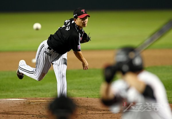 28일 대전 한화생명이글스파크에서 ‘2022 신한은행 SOL KBO리그’ 한화 이글스와 LG 트윈스의 경기가 열렸다. LG 선발투수 임찬규가 힘차게 볼을 던지고 있다.