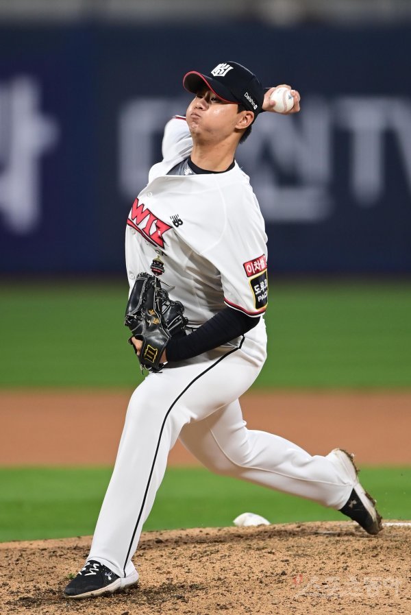 28일 경기도 수원KT위즈파크에서 열린 ‘2022 신한은행 SOL KBO리그’ KT 위즈와 두산 베어스의 경기에서 8회초 KT 김민이 교체로 마운드에 올라 역투하고 있다.