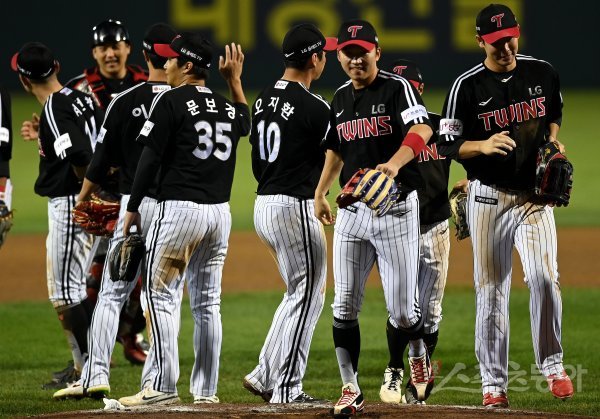 28일 대전 한화생명이글스파크에서 ‘2022 신한은행 SOL KBO리그’ 한화 이글스와 LG 트윈스의 경기가 열렸다. LG가 한화를 상대로 4-1로 승리한 후 선수들이 그라운드에서 기쁨을 나누고 있다.