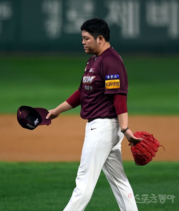 29일 인천 SSG 랜더스필드에서 ‘2022 신한은행 SOL KBO리그’ SSG 랜더스와 키움 히어로즈의 경기가 열렷다. 1회말 1사 1, 2루에서 키움 선발 한현희가 교체되고 있다.