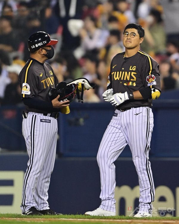 29일 서울 잠실야구장에서 열린 ‘2022 신한은행 SOL KBO리그’ LG 트윈스와 KT 위즈의 경기에서 2회말 2사 1, 3루 LG 채은성이 내야 땅볼을 친 후 아쉬워하고 있다.