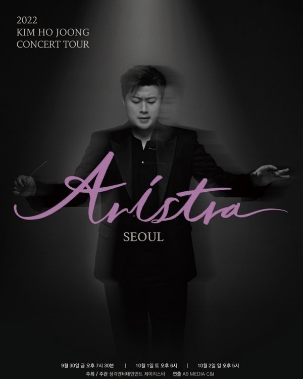 김호중의 ‘아리스트라’ 서울 공연은 9월 30일부터 10월 2일까지 서울 송파구 올림픽 체조경기장(케이스포돔)에서 개최되며, 서울 외 추가 지역은 추후 공개될 예정이다.