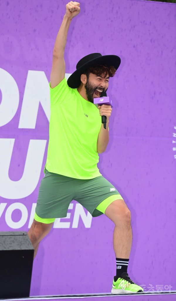 2일 서울 영등포구 여의도공원에서 열린 한 스포츠 브랜드의 러닝대회에서 방송인 노홍철이 포즈를 취하고 있다.