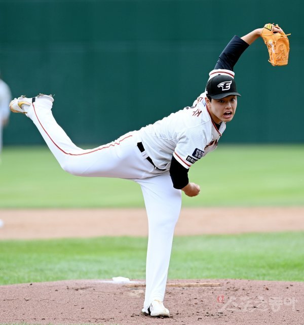 3일 대전 한화생명이글스파크에서 ‘2022 신한은행 SOL KBO리그’ 한화 이글스와 SSG 랜더스의 경기가 열렸다. 한화 선발투수 문동주가 힘차게 볼을 던지고 있다.