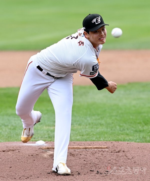 3일 대전 한화생명이글스파크에서 ‘2022 신한은행 SOL KBO리그’ 한화 이글스와 SSG 랜더스의 경기가 열렸다. 한화 선발투수 문동주가 힘차게 볼을 던지고 있다.
