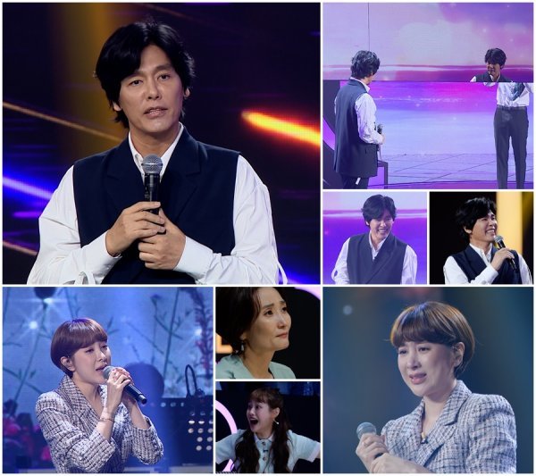 무엇보다 최성국은 “가사를 잊어버릴까바 손바닥에 빼곡히 적어왔다”라며 손바닥을 들어 올려 보여주는 특유의 솔직한 면모로 웃음을 터트렸던 상황. 더 블루의 ‘그대와 함께’를 부른 이후 예상치 못한 미스터리 싱어가 등장하자 “너였어? 미치겠다. 생각도 못했다”며 탄성을 내질렀다. 그리고 최성국과 미스터리 싱어는 특별한 기교는 없지만 담백함으로 가득 채워진 무대를 선보이며 박수를 끌어냈다.