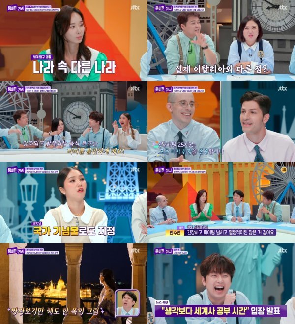 3일 방송된 JTBC ‘톡파원 25시’에서는 일본 속 네덜란드, 미국 속 이탈리아를 만난 ‘나라 속 다른 나라’ 특집과 헝가리 부다페스트 100년 투어가 펼쳐졌다. 풍성한 볼거리가 가득한 랜선 여행에 오마이걸 미미의 유쾌한 입담, 헝가리 유학파 배우 한수연 설명이 함께했다.