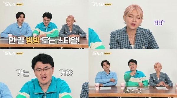 이 솔로남의 ‘고구마’식 화법에 ‘과몰입’하던 송해나는 “에?”라고 경악하고, 데프콘도 “그래서 (솔로녀가) 좋아유, 안 좋아유?”라며 답답함을 호소한다. 결국 솔로녀는 똑 부러진 상황 파악과 핵심 정리로 솔로남의 속뜻을 시원하게 캐치하고, ‘심쿵 멘트’를 쉴 새 없이 쏟아낸다. 솔로녀의 사이다 화법에 3MC는 “크으~”라고 감동하고 데프콘은 “작살난다! 남자는 저런 말에 간다”며 박수를 친다.