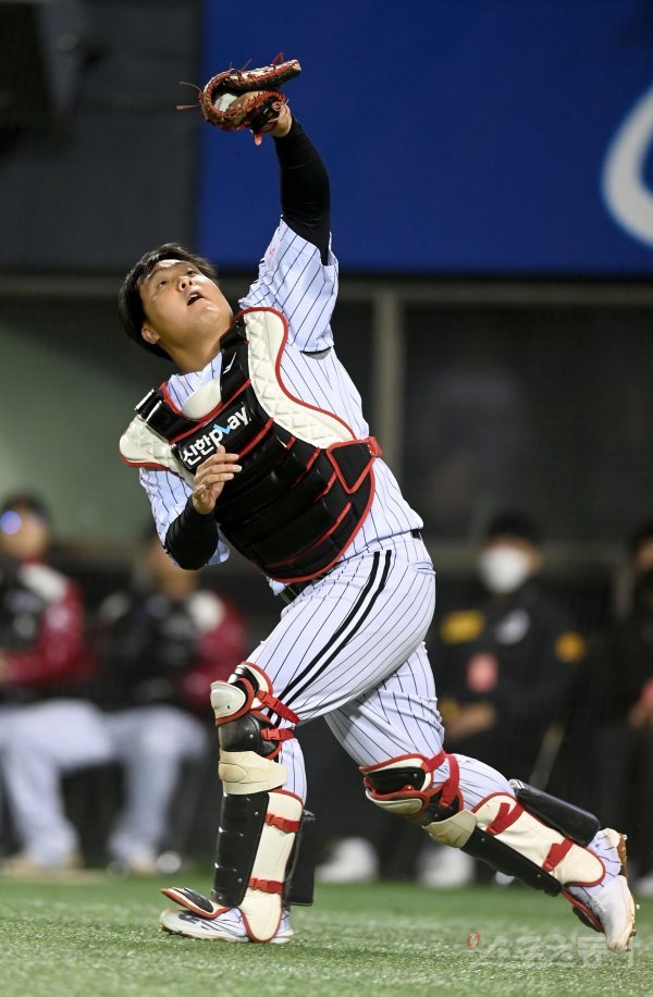 4일 서울 잠실야구장에서 ‘2022 신한은행 MY CAR KBO리그’ KIA 타이거즈와 LG 트윈스 경기가 열렸다. 8회초 무사 LG 김기연이 파울볼을 잡고 있다.