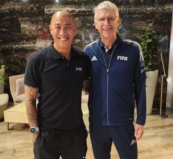 차두리가 아르센 벵거 전 아스널 감독과 다정하게 포즈를 취하고 있다. 차두리 인스타그램 캡처.