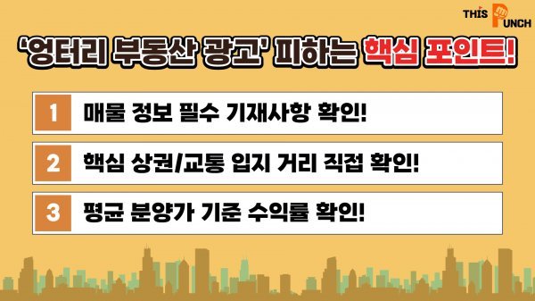 이에 부동산 분양 현장 전문인력들과 부동산 투자자들을 위한 블라인드 커뮤니티 ‘디스펀치’(THISPUNCH)는 엉터리 부동산 광고를 피하는 3가지 핵심 포인트를 제시했다.