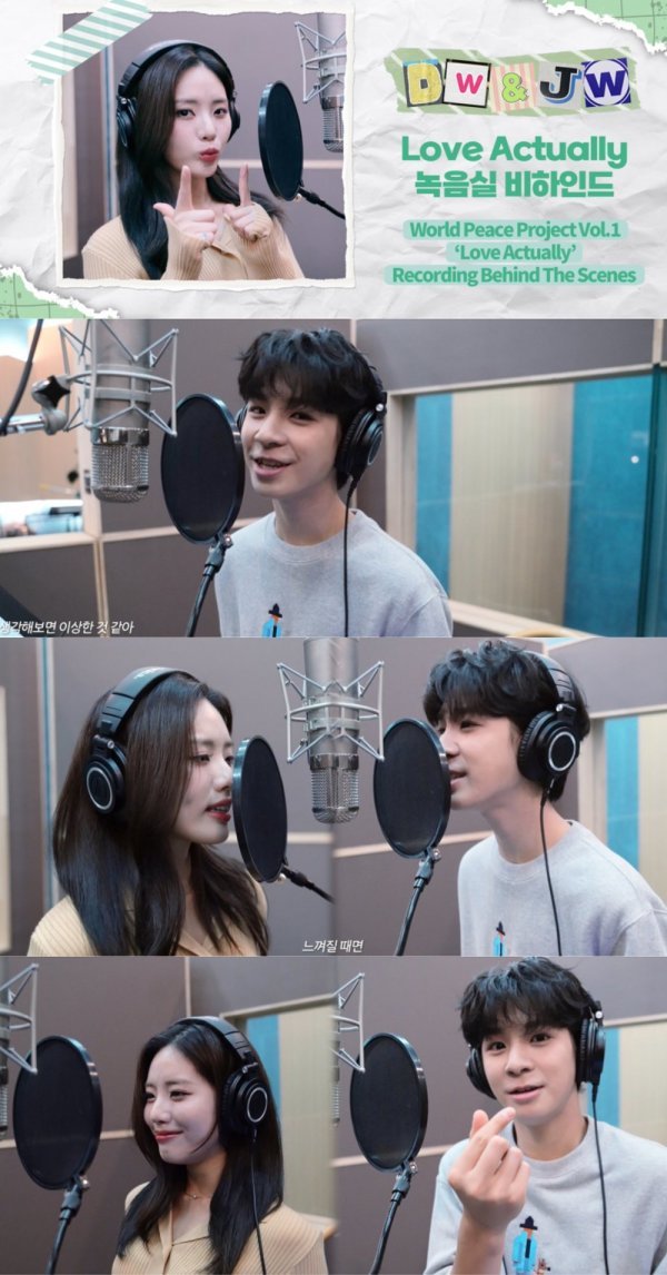 영상에는 편안한 옷차림으로 녹음에 임하는 정동원, 박지원의 모습이 담겼다. 정동원은 밝은 미소와 함께 카메라를 바라보며 감미로운 도입부를 가창했다. 이어 박지원은 독보적인 음색으로 \'Love Actually\'를 소화하며 귀 호강을 선사했다.