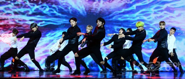 그룹 킹덤이 5일 서울 광진구 예스24 라이브홀에서 진행된 미니 5집 ‘히스토리 오브 킹덤 : 파트 5. 루이(History Of Kingdom : Part Ⅴ. Louis)’ 쇼케이스에서 화려한 무대를 선보이고 있다.