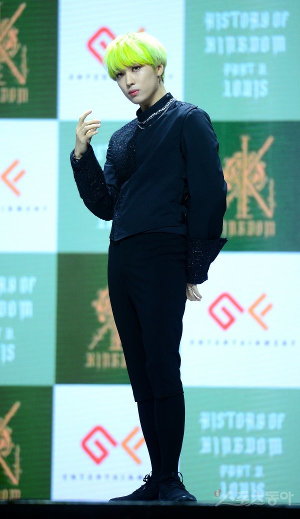 그룹 킹덤 아서가 5일 서울 광진구 예스24 라이브홀에서 진행된 미니 5집 ‘히스토리 오브 킹덤 : 파트 5. 루이(History Of Kingdom : Part Ⅴ. Louis)’ 쇼케이스에 포토타임을 갖고 있다.