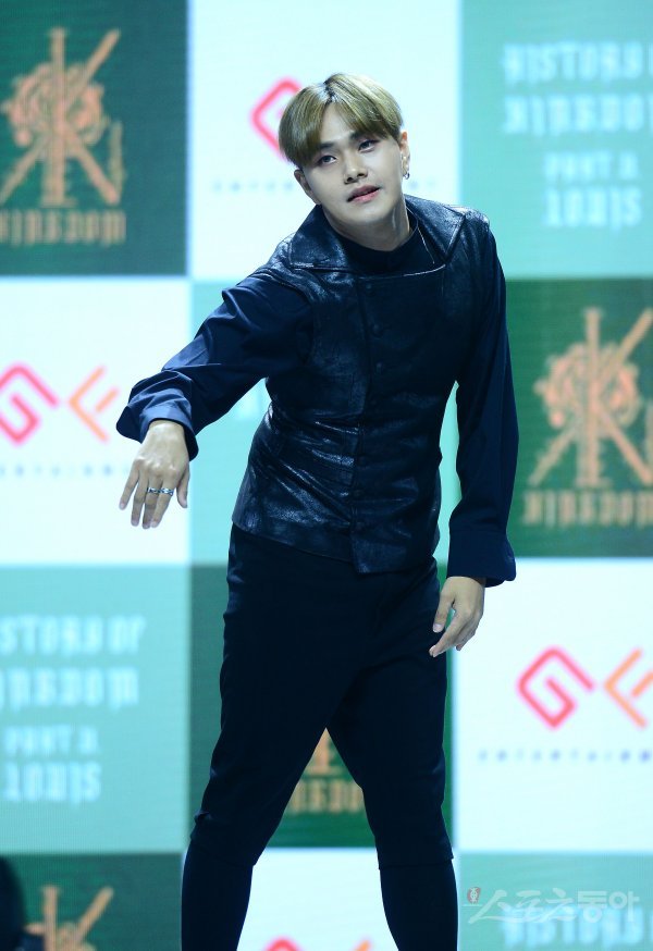그룹 킹덤 자한이 5일 서울 광진구 예스24 라이브홀에서 진행된 미니 5집 ‘히스토리 오브 킹덤 : 파트 5. 루이(History Of Kingdom : Part Ⅴ. Louis)’ 쇼케이스에 포토타임을 갖고 있다.