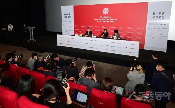 5일 부산 해운대구 우동 영화의전당에서 열린 ‘제27회 부산국제영화제’ 개막작 ‘바람의 향기’ 기자회견에서 하디 모하게흐 감독이 질문에 답하고 있다.