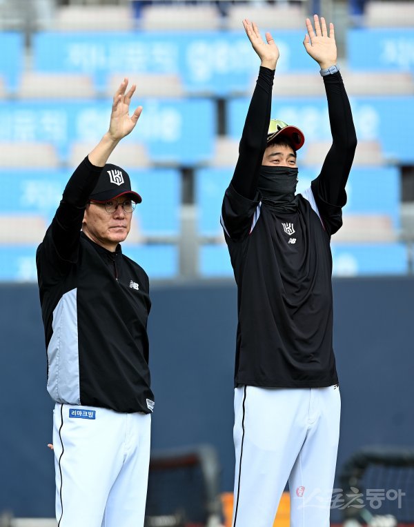 5일 경기도 수원 kt위즈파크에서 ‘2022 신한은행 SOL KBO리그’ kt 위즈와 삼성 라이온즈의 경기가 열린다. 경기에 앞서 kt 이강철 감독이 훈련을 지시하고 있다.