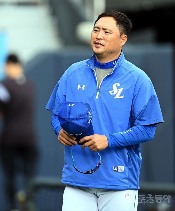 5일 경기도 수원 kt위즈파크에서 ‘2022 신한은행 SOL KBO리그’ kt 위즈와 삼성 라이온즈의 경기가 열린다. 경기에 앞서 삼성 박한이 코치.